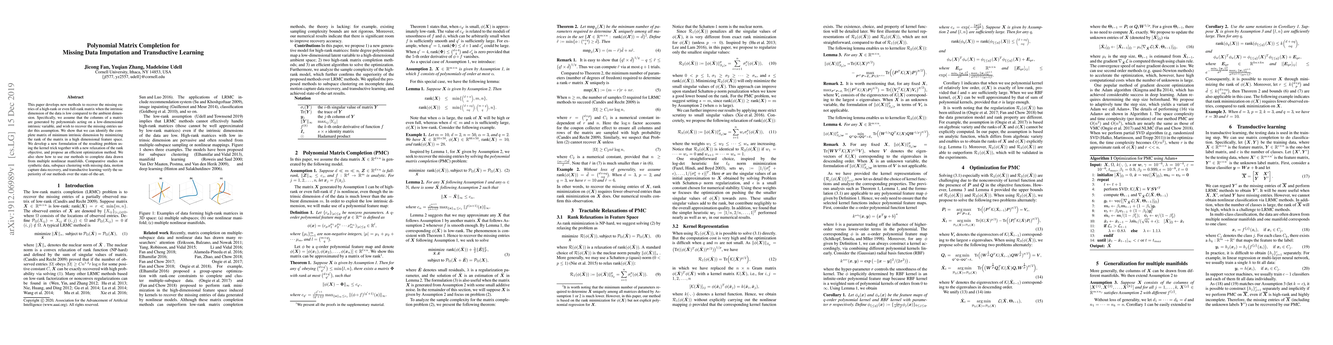 This paper develops new methods to recover the missing entries of a high-rank or even full-rank matrix when the intrinsic dimension of the data is low compared to the ambient dimension. Specifically, we assume that the columns of a matrix are generated by polynomials acting on a low-dimensional intrinsic variable, and wish to recover the missing entries under this assumption. We show that we can identify the complete matrix of minimum intrinsic dimension by minimizing the rank of the matrix in a high dimensional feature space. We develop a new formulation of the resulting problem using the kernel trick together with a new relaxation of the rank objective, and propose an efficient optimization method. We also show how to use our methods to complete data drawn from multiple nonlinear manifolds. Comparative studies on synthetic data, subspace clustering with missing data, motion capture data recovery, and transductive learning verify the superiority of our methods over the state-of-the-art.