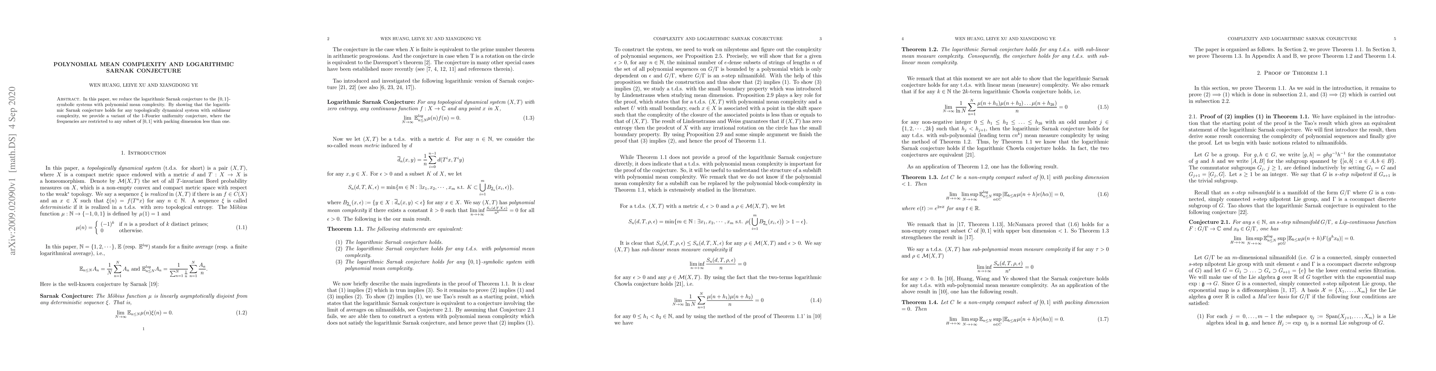 In this paper, we reduce the logarithmic Sarnak conjecture to the $\{0,1\}$-symbolic systems with polynomial mean complexity. By showing that the logarithmic Sarnak conjecture holds for any topologically dynamical system with sublinear complexity, we provide a variant of the $1$-Fourier uniformity conjecture, where the frequencies are restricted to any subset of $[0,1]$ with packing dimension less than one.