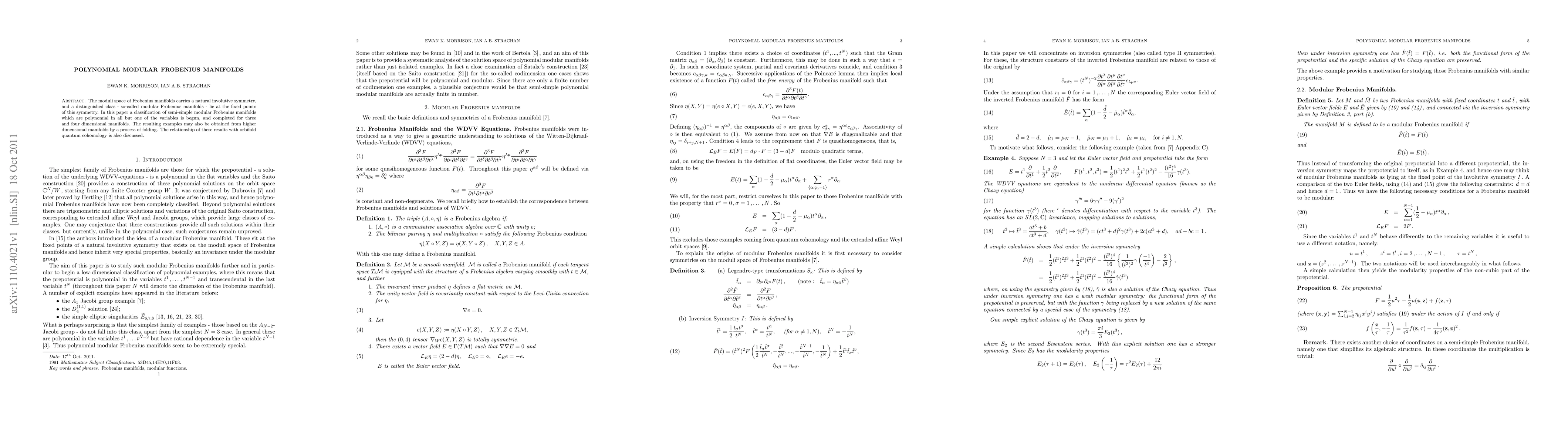The moduli space of Frobenius manifolds carries a natural involutive symmetry, and a distinguished class - so-called modular Frobenius manifolds - lie at the fixed points of this symmetry. In this paper a classification of semi-simple modular Frobenius manifolds which are polynomial in all but one of the variables is begun, and completed for three and four dimensional manifolds. The resulting examples may also be obtained from higher dimensional manifolds by a process of folding. The relationship of these results with orbifold quantum cohomology is also discussed.