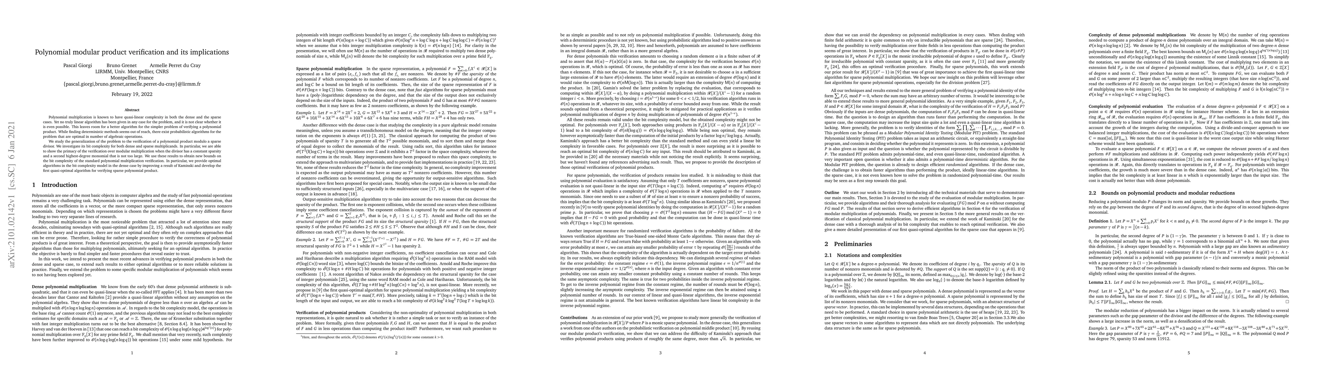 Researchers develop new algorithms to verify polynomial product modulo a sparse divisor, improving bounds on bit complexity for both dense and sparse multiplicands.