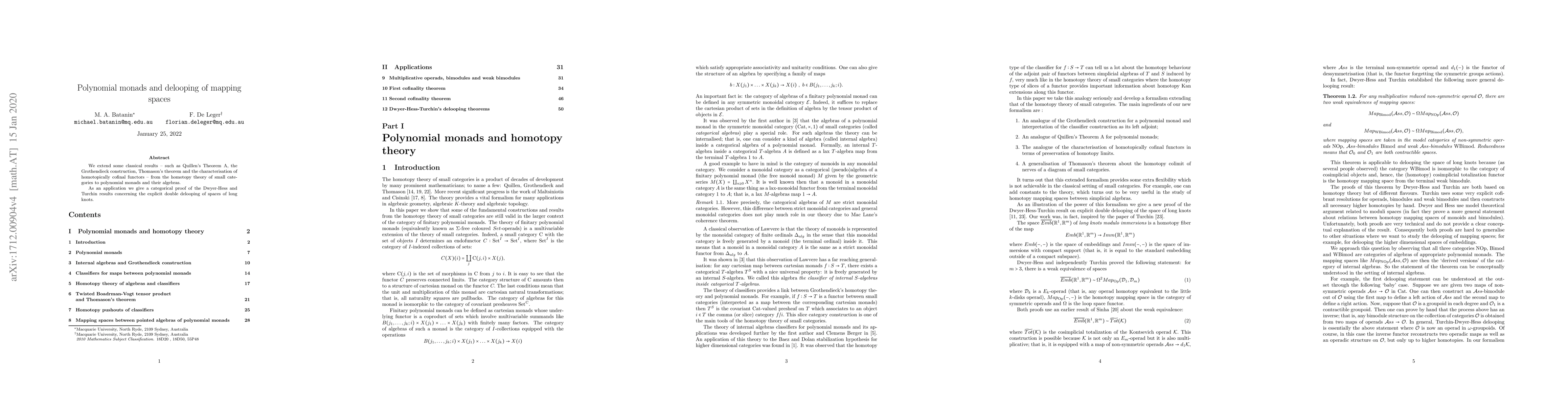 Summary: This paper extends classical homotopy theory results to polynomial monads, providing a categorical proof for the double delooping of spaces of long knots, leveraging insights from Quillen’s Theorem A and related constructions.