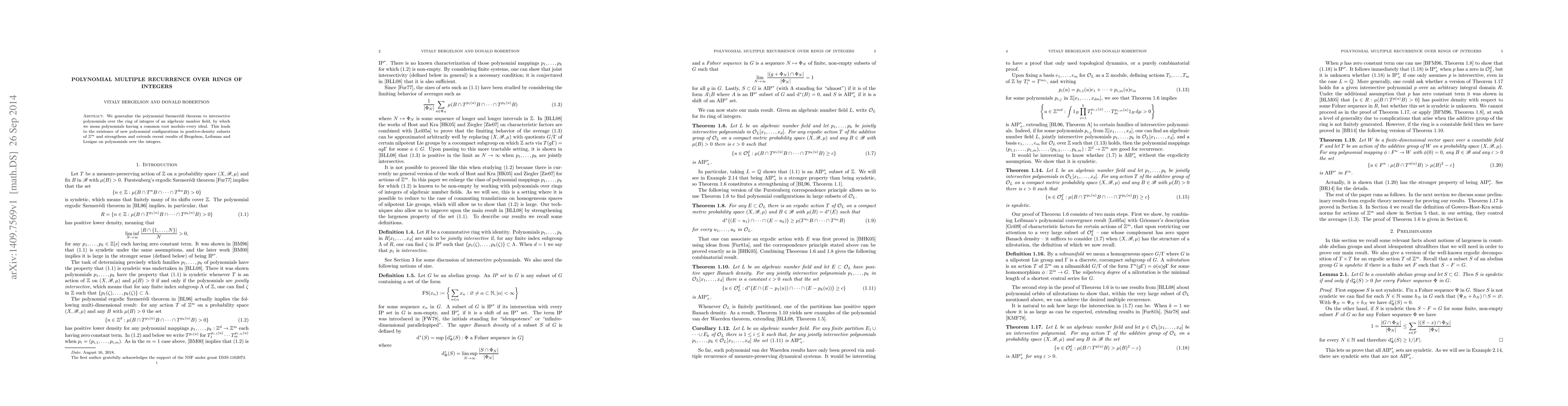 Summary: The paper extends the polynomial Szemerédi theorem to polynomials over the integers of algebraic number fields, establishing new dense polynomial configurations in subsets of $\mathbb{Z}^m$ and building on Bergelson, Leibman, and Lesigne's recent findings.