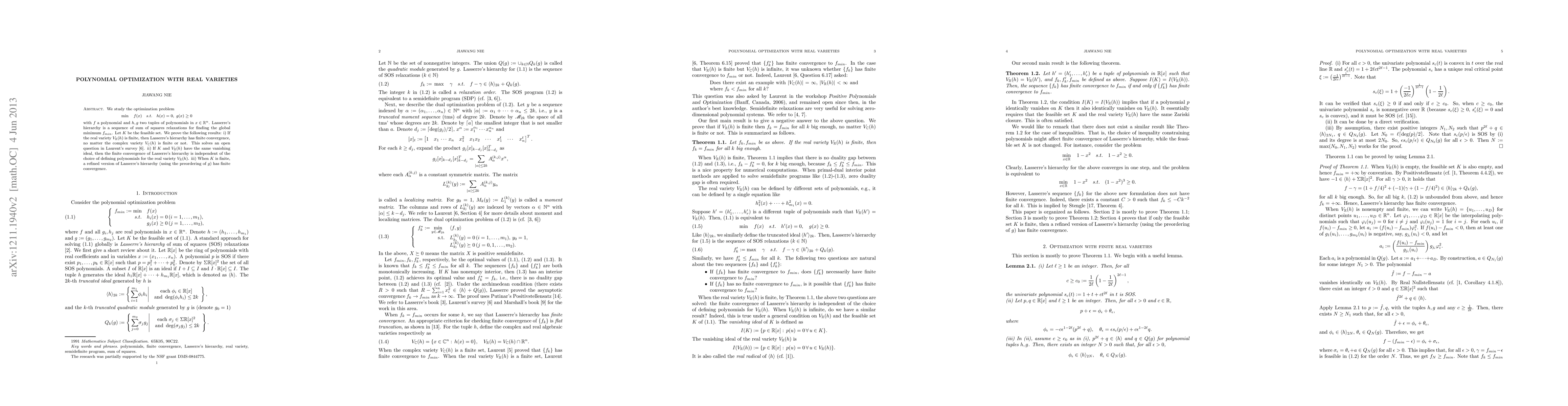 This paper explores polynomial optimization under polynomial constraints using Lasserre's hierarchy, proving that finite convergence occurs if the real variety of constraints is finite, regardless of the complex variety. It also shows that convergence is independent of the defining polynomials when the feasible set and the real variety share the same vanishing ideal.