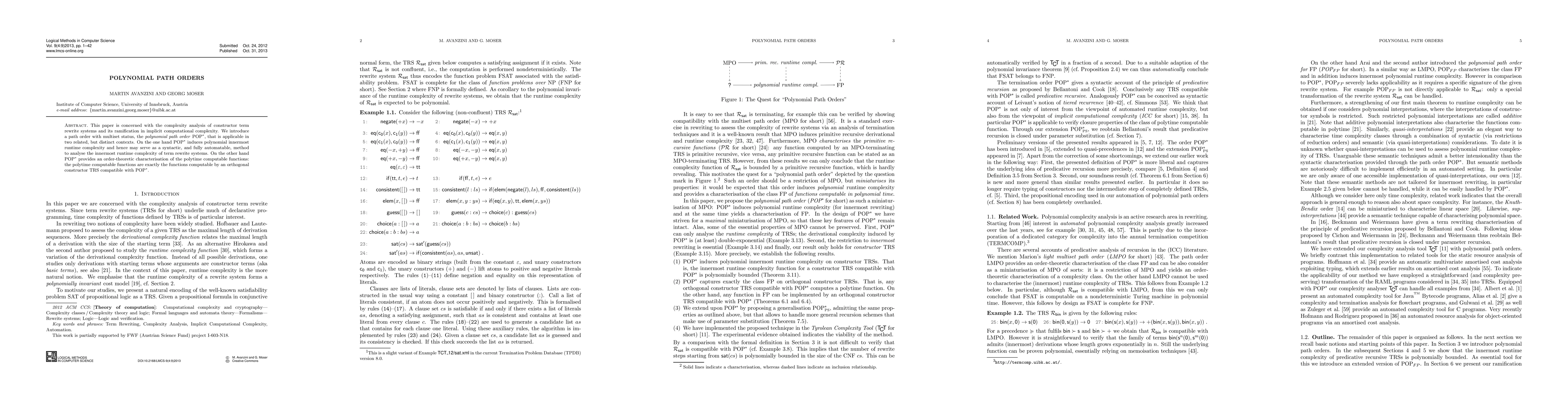 This paper introduces a new method to analyze term rewrite systems called Polynomial Path Orders (POP*), which can determine if functions are computable in polynomial time. It provides a way to automate the analysis of innermost runtime complexity and characterizes polytime computable functions.