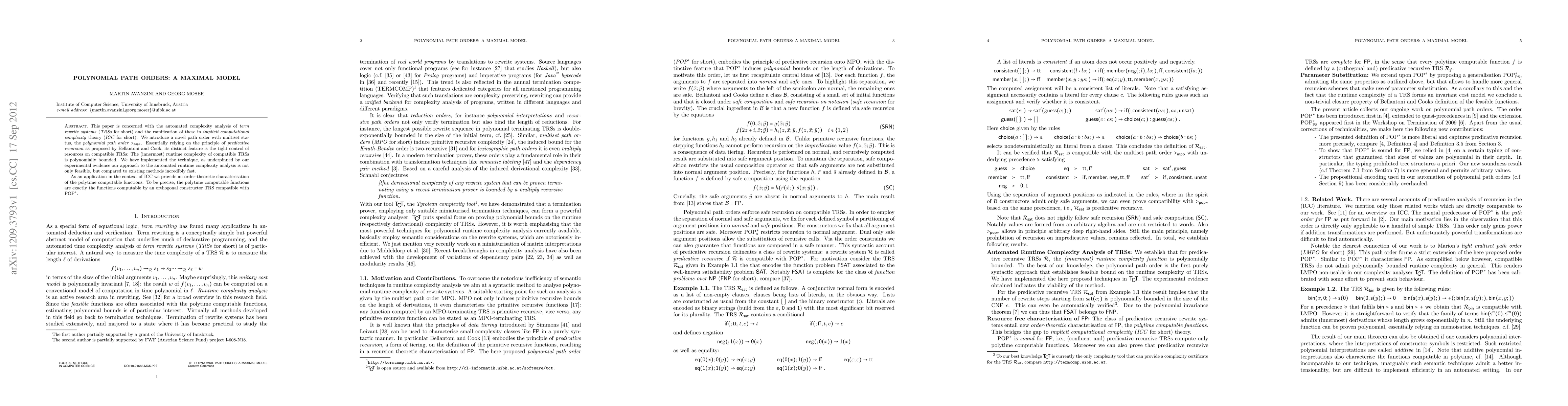 Researchers introduced a new path order method called POP* that allows for fast automated complexity analysis of term rewrite systems, enabling the study of polytime computable functions in implicit computational complexity theory.