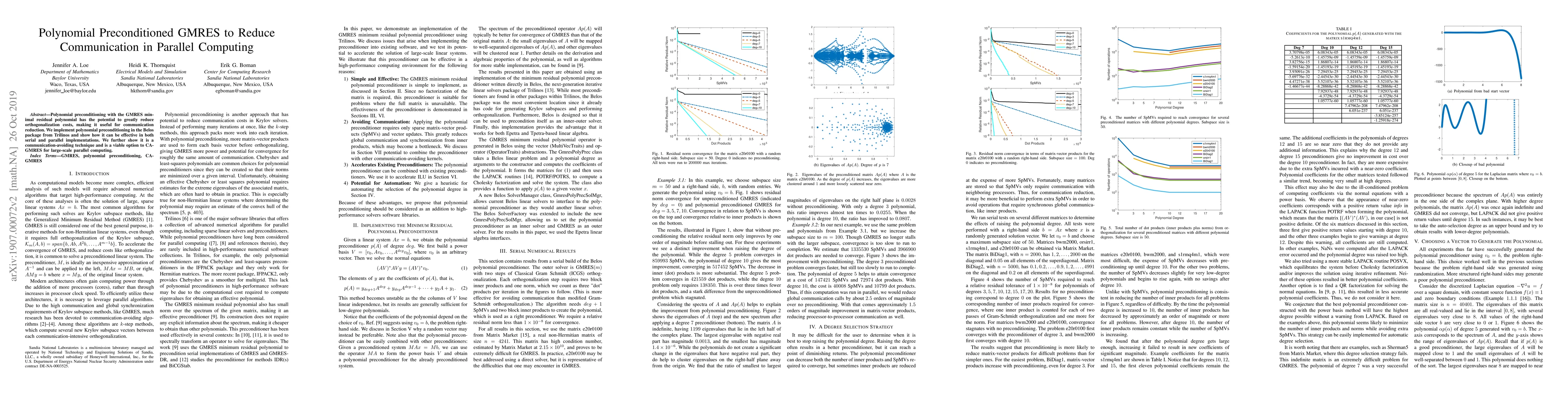 Polynomial preconditioning with GMRES reduces orthogonalization costs, making it a viable option for large-scale parallel computing, potentially reducing communication in parallel computing environments.
