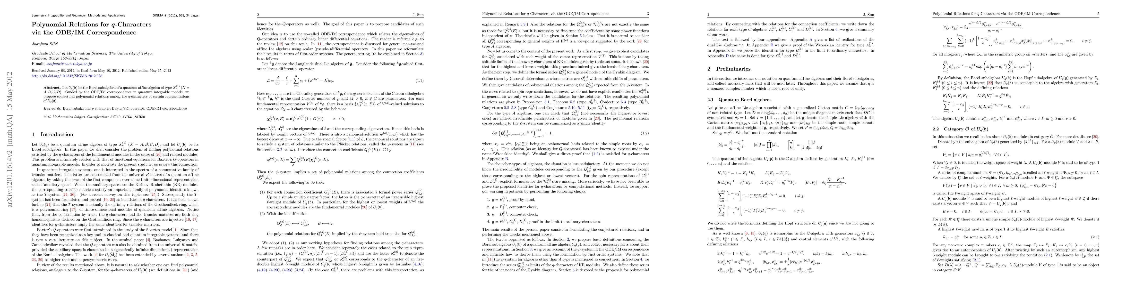 This paper proposes conjectural polynomial relations among $q$-characters of representations of $U_q(\mathfrak{b})$, the Borel subalgebra of a quantum affine algebra, inspired by the ODE/IM correspondence in quantum integrable systems. These relations aim to elucidate the underlying structure of these characters.