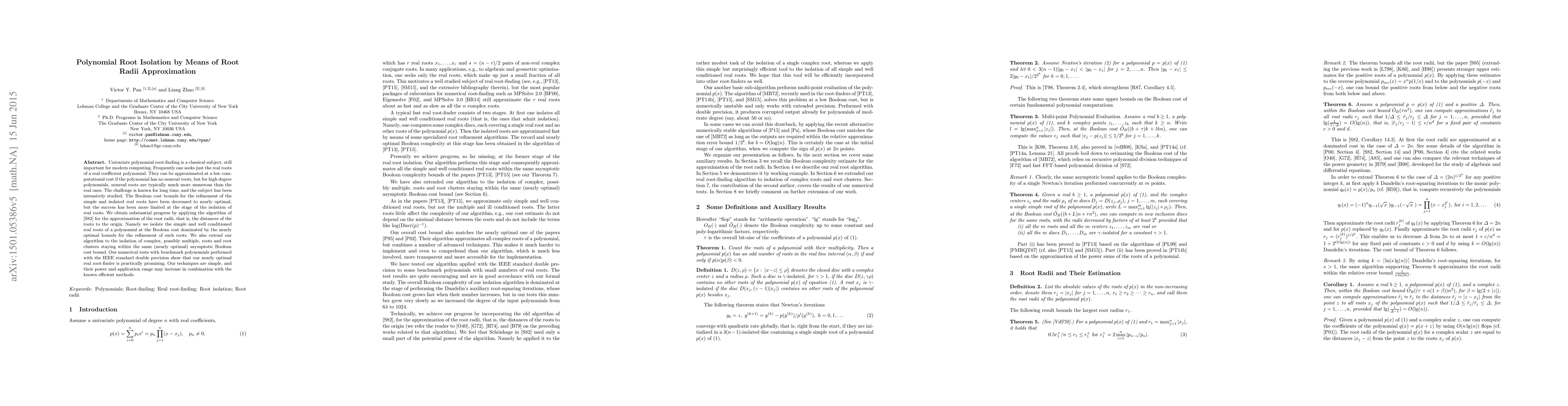 This paper presents an efficient algorithm for isolating real and complex roots of high-degree polynomials, leveraging Schoenhage's 1982 method for root radii approximation. The approach achieves nearly optimal Boolean cost bounds for root isolation and shows promising practical results in numerical tests.