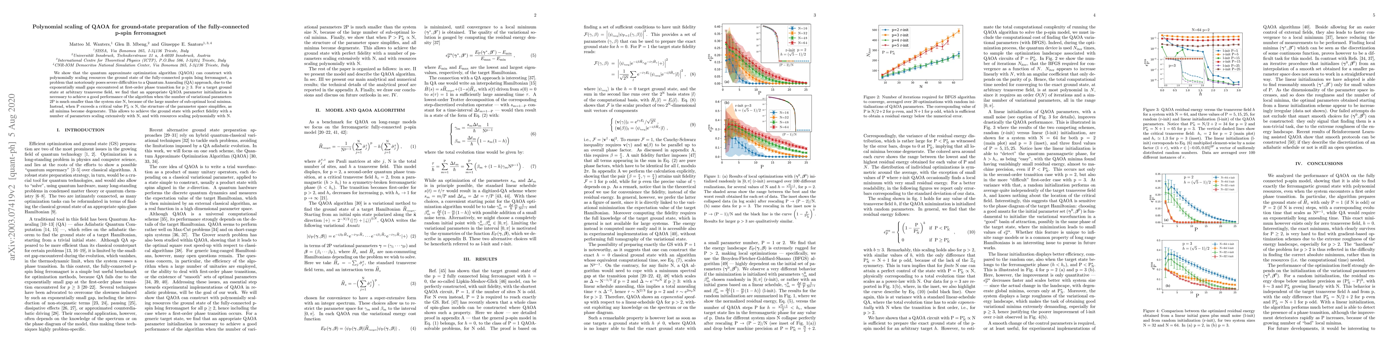 This paper demonstrates that the QAOA can efficiently prepare the ground state of the fully-connected p-spin ferromagnet using polynomially scaling resources, overcoming challenges faced by Quantum Annealing. It highlights the necessity of proper parameter initialization for optimal performance when the number of parameters is small relative to the system size.