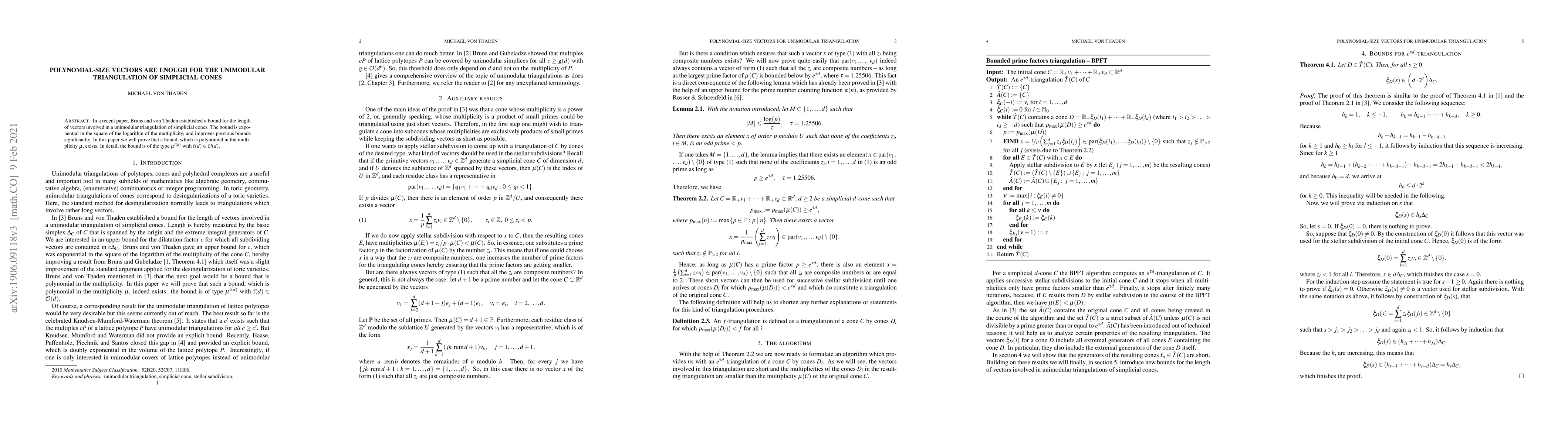 Researchers prove a polynomial bound exists for unimodular triangulation of simplicial cones, improving upon previous exponential bounds and establishing a new limit that is polynomial in the multiplicity.