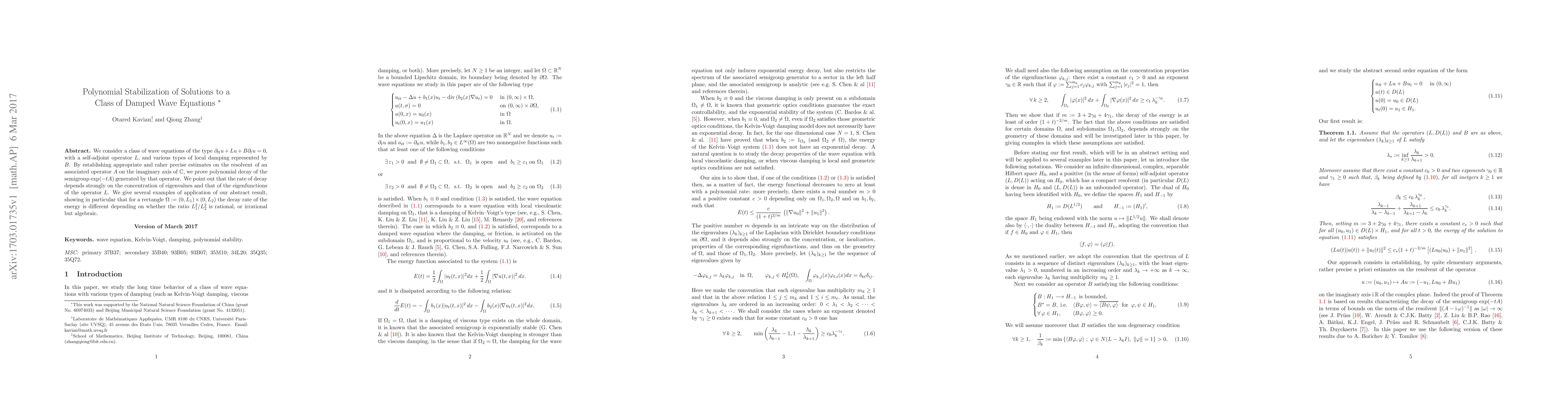 This research paper proves polynomial decay of solutions to damped wave equations under specific conditions, with applications in various physical systems.