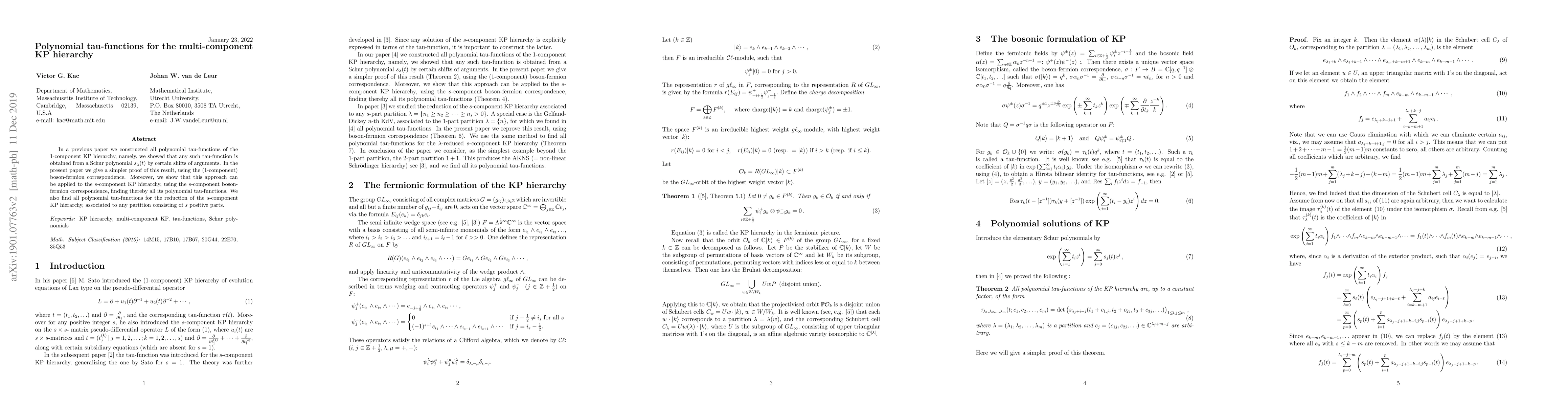 This paper simplifies the construction of polynomial tau-functions for the multi-component KP hierarchy using the boson-fermion correspondence. It extends previous results for the 1-component case to the s-component case and identifies all polynomial tau-functions for the associated reductions.