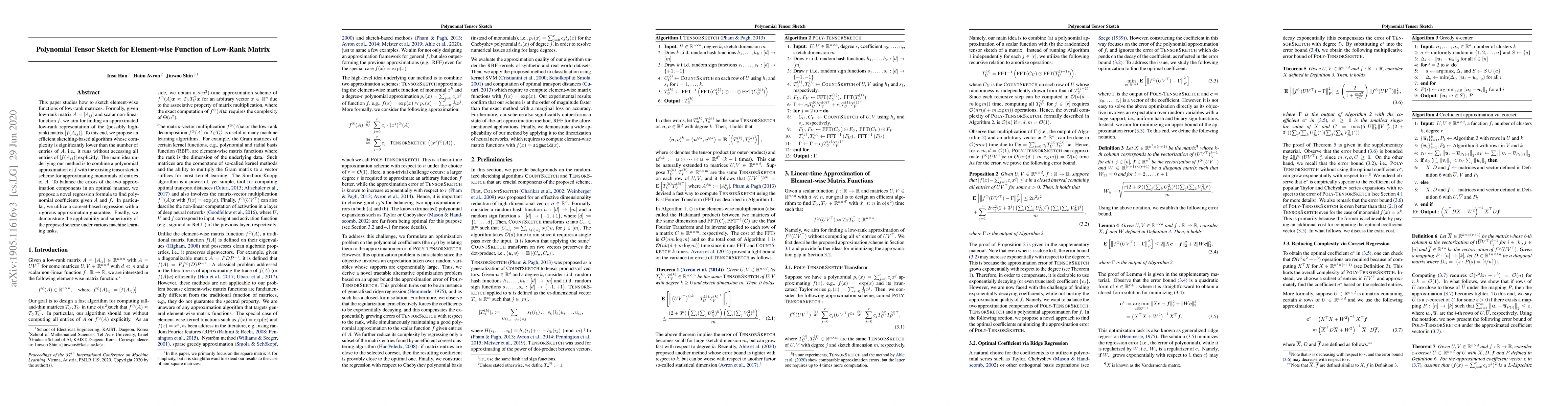 The paper proposes an algorithm to approximate low-rank matrix functions using polynomial tensor sketching, reducing computational complexity compared to explicit function evaluation.