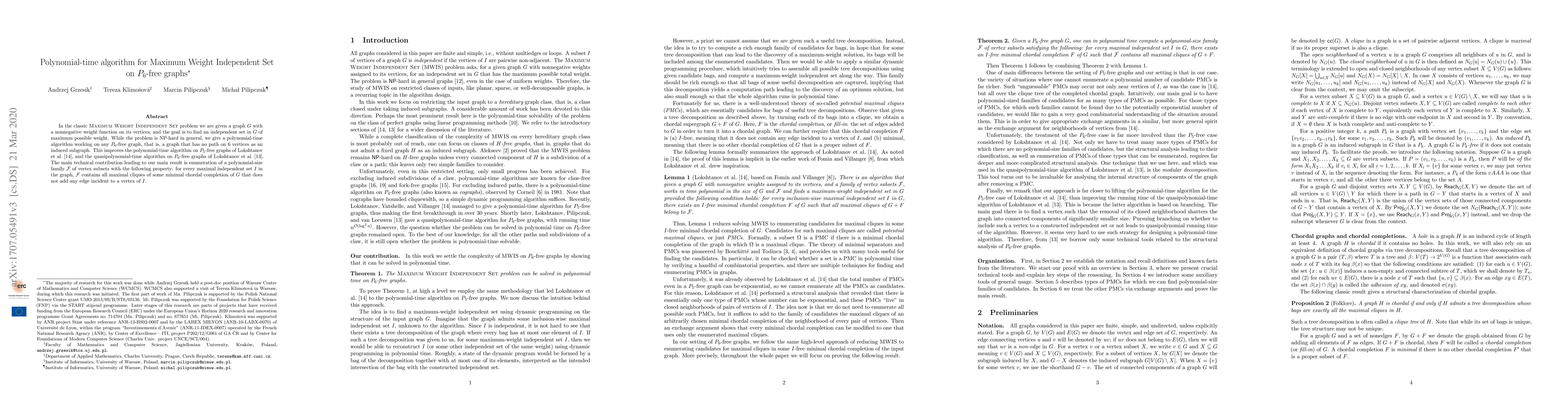 Stéphan Thomassé, Maria Chudnovsky, Michał Pilipczuk et al.