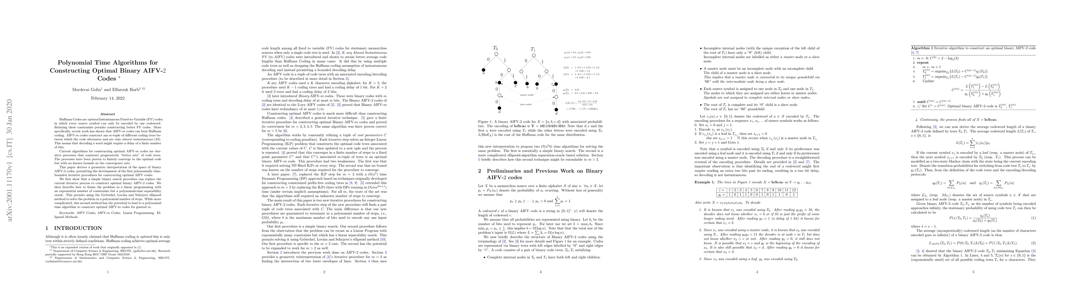 Researchers developed a new method to construct optimal binary AIFV-2 codes in polynomial time, improving upon existing iterative processes with finite convergence rates.