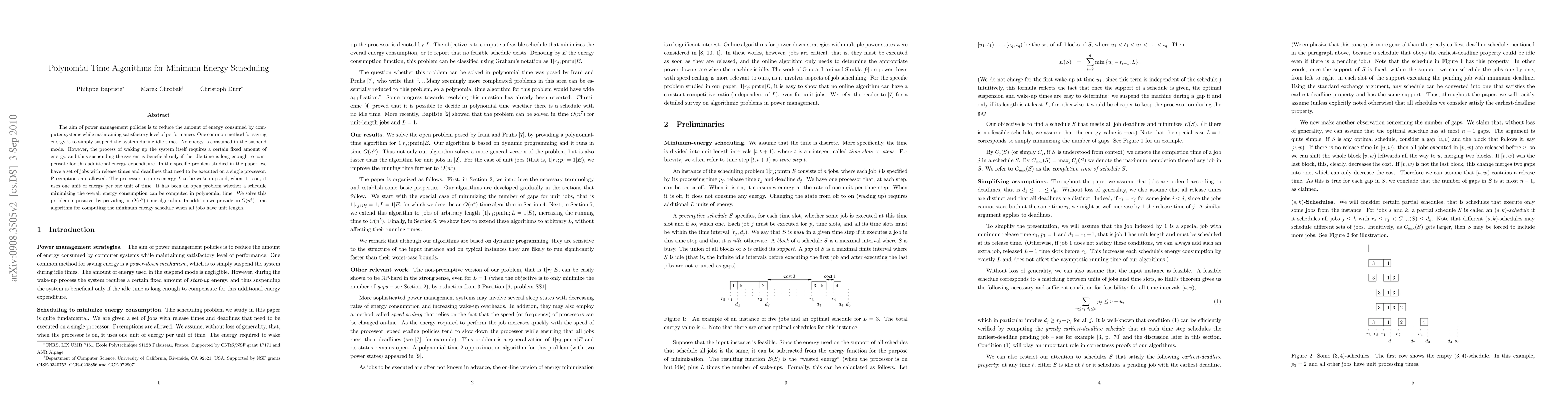 The aim of power management policies is to reduce the amount of energy consumed by computer systems while maintaining satisfactory level of performance. One common method for saving energy is to simply suspend the system during the idle times. No energy is consumed in the suspend mode. However, the process of waking up the system itself requires a certain fixed amount of energy, and thus suspending the system is beneficial only if the idle time is long enough to compensate for this additional energy expenditure. In the specific problem studied in the paper, we have a set of jobs with release times and deadlines that need to be executed on a single processor. Preemptions are allowed. The processor requires energy L to be woken up and, when it is on, it uses one unit of energy per one unit of time. It has been an open problem whether a schedule minimizing the overall energy consumption can be computed in polynomial time. We solve this problem in positive, by providing an O(n^5)-time algorithm. In addition we provide an O(n^4)-time algorithm for computing the minimum energy schedule when all jobs have unit length.