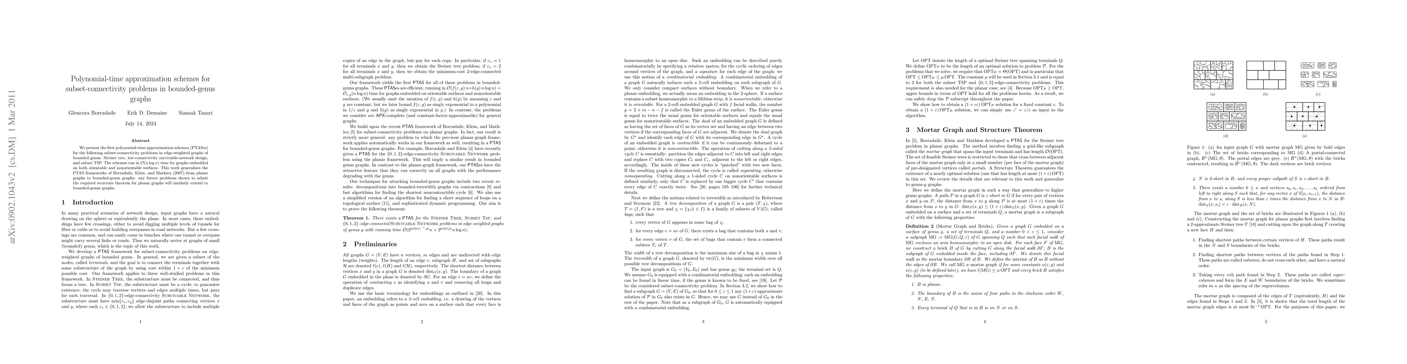 This paper introduces polynomial-time approximation schemes (PTASes) for Steiner tree, survivable-network design, and subset TSP in edge-weighted graphs with bounded genus, running in O(n log n) time. The work extends PTAS frameworks from planar to bounded-genus graphs.