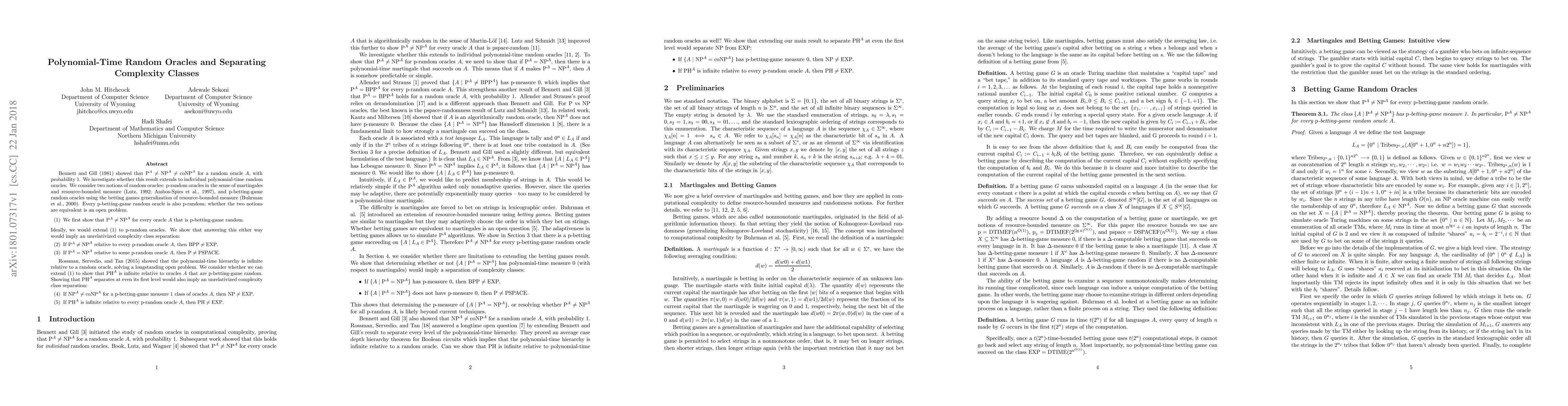This paper investigates the separation of complexity classes relative to polynomial-time random oracles, showing that P^A != NP^A for every p-betting-game random oracle A, and explores the implications of these results on unrelativized complexity class separations, such as BPP != EXP and P != PSPACE.