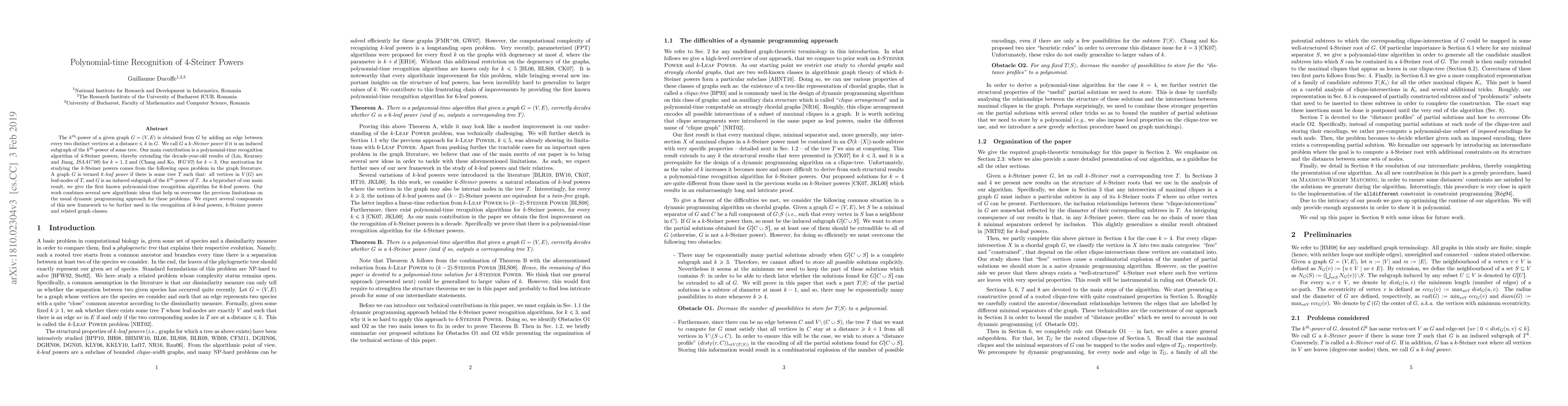 The paper presents a polynomial-time recognition algorithm for 4-Steiner powers, extending previous results to k=1,2,3, and provides the first known polynomial-time algorithm for 6-leaf powers as a byproduct.