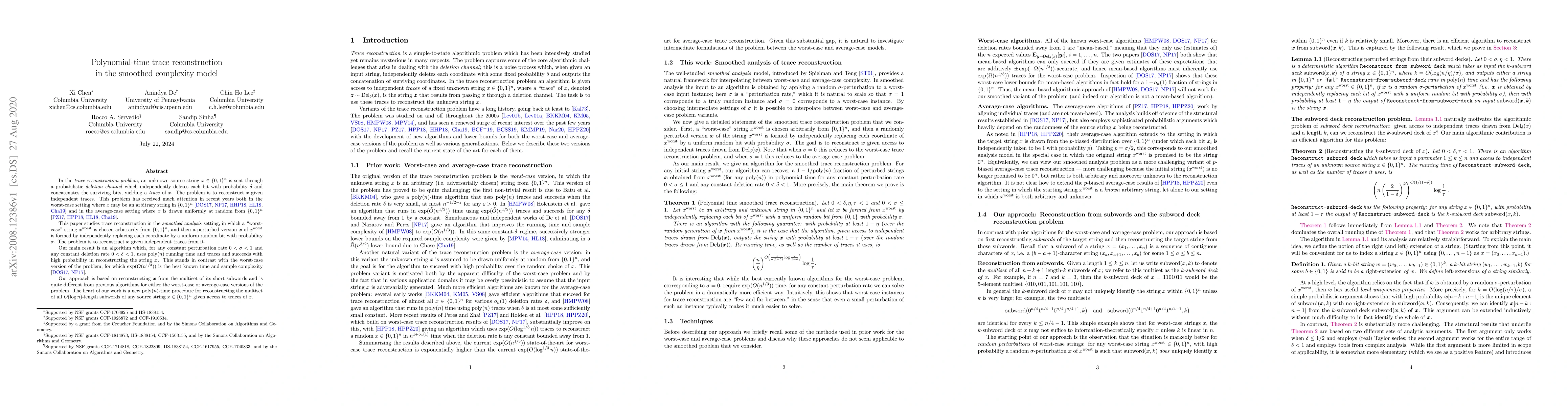 A research paper presents an algorithm for reconstructing a string from traces of its perturbed version, achieving polynomial-time complexity in the smoothed analysis setting.