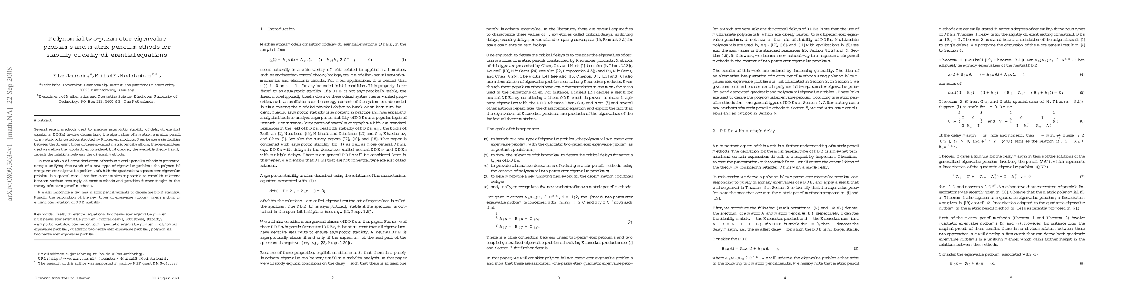 Several recent methods used to analyze asymptotic stability of delay-differential equations (DDEs) involve determining the eigenvalues of a matrix, a matrix pencil or a matrix polynomial constructed by Kronecker products. Despite some similarities between the different types of these so-called matrix pencil methods, the general ideas used as well as the proofs differ considerably. Moreover, the available theory hardly reveals the relations between the different methods. In this work, a different derivation of various matrix pencil methods is presented using a unifying framework of a new type of eigenvalue problem: the polynomial two-parameter eigenvalue problem, of which the quadratic two-parameter eigenvalue problem is a special case. This framework makes it possible to establish relations between various seemingly different methods and provides further insight in the theory of matrix pencil methods. We also recognize a few new matrix pencil variants to determine DDE stability. Finally, the recognition of the new types of eigenvalue problem opens a door to efficient computation of DDE stability.