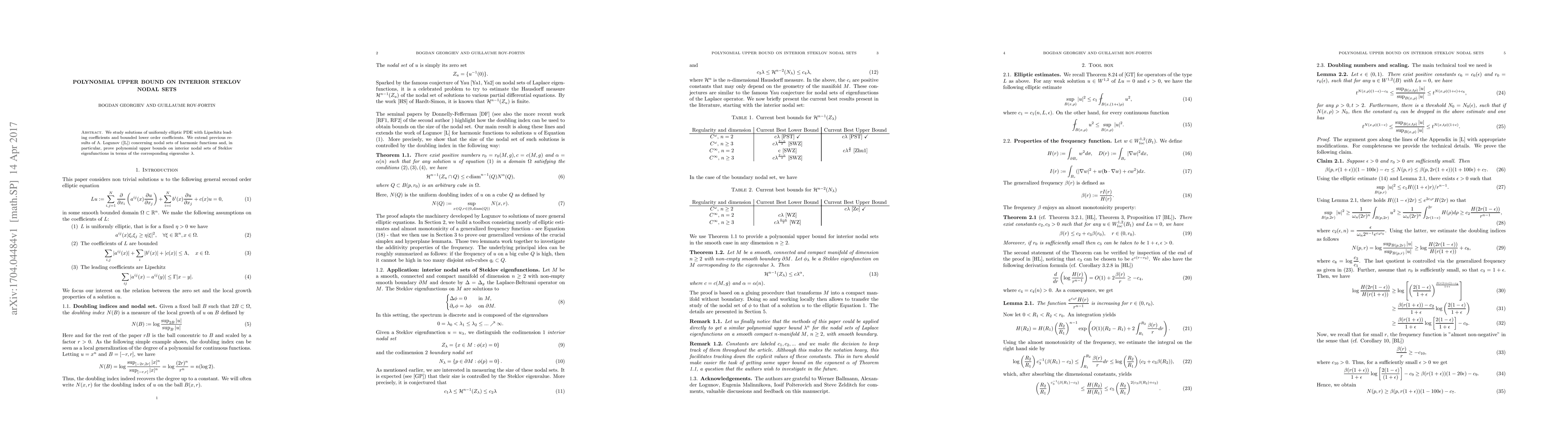 Summary: This paper extends previous results on nodal sets of harmonic functions to prove polynomial upper bounds on the interior nodal sets of Steklov eigenfunctions, relating their size to the corresponding eigenvalue $\lambda$ for uniformly elliptic PDEs with specific coefficient conditions.