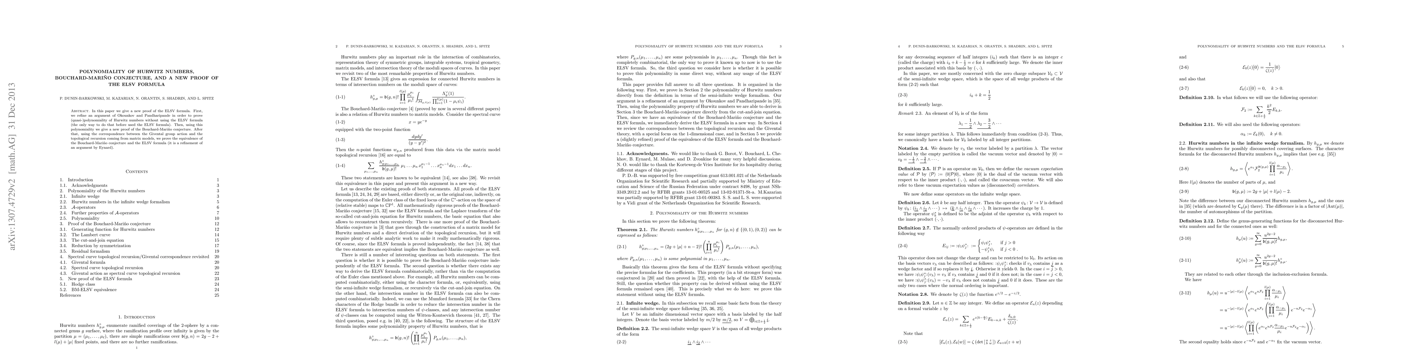 This paper presents a novel proof of the ELSV formula by first demonstrating the (quasi-)polynomiality of Hurwitz numbers independently of the ELSV formula. It then leverages this polynomiality to provide a new proof of the Bouchard-Mari\~no conjecture and ultimately establishes the equivalence of the Bouchard-Mari\~no conjecture with the ELSV formula through the topological recursion and Givental group action.