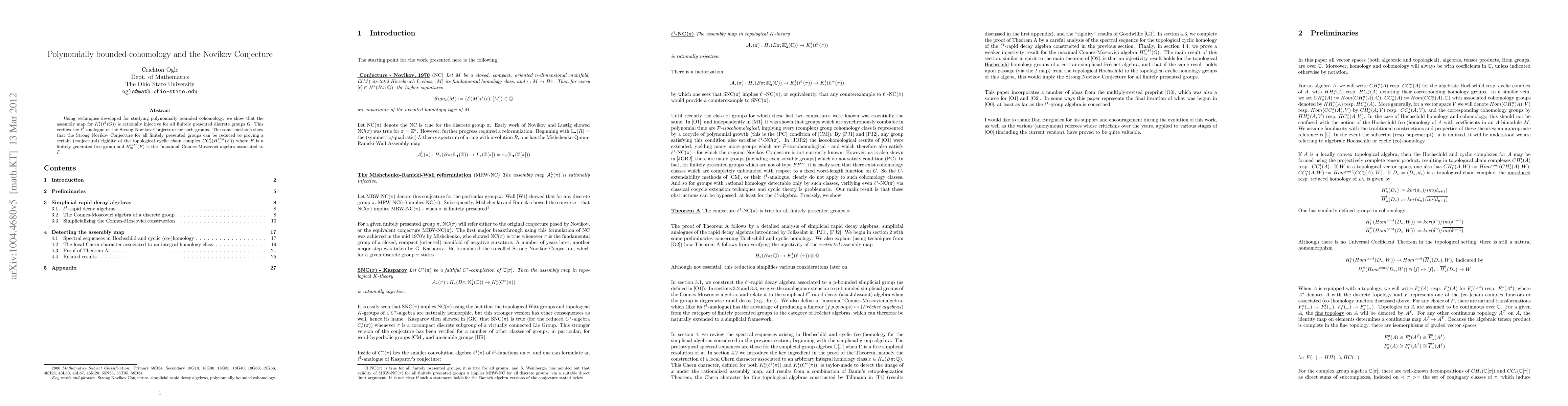 The paper demonstrates that the assembly map for $K_*^t(\ell^1(G))$ is rationally injective for finitely presented discrete groups $G$, verifying the $\ell^1$-analogue of the Strong Novikov Conjecture using polynomially bounded cohomology techniques.