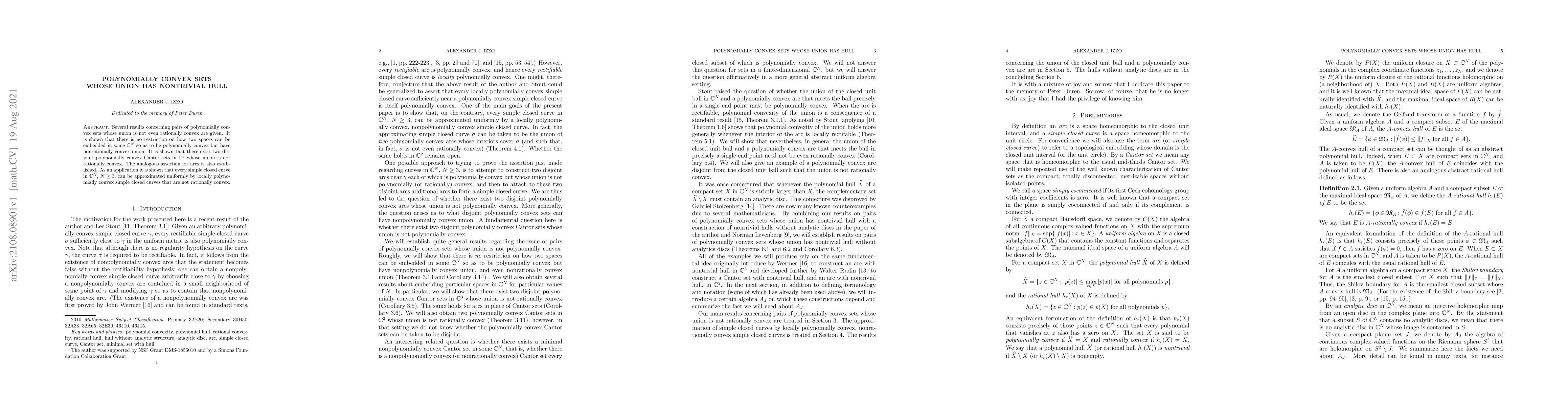 Several results concerning pairs of polynomially convex sets whose union is not even rationally convex are given. It is shown that there is no restriction on how two spaces can be embedded in some $\C^N$ so as to be polynomially convex but have nonrationally convex union. It is shown that there exist two disjoint polynomially convex Cantor sets in $\C^3$ whose union is not rationally convex. The analogous assertion for arcs is also established. As an application it is shown that every simple closed curve in $\C^N$, $N\geq 3$, can be approximated uniformly by locally polynomially convex simple closed curves that are not rationally convex.