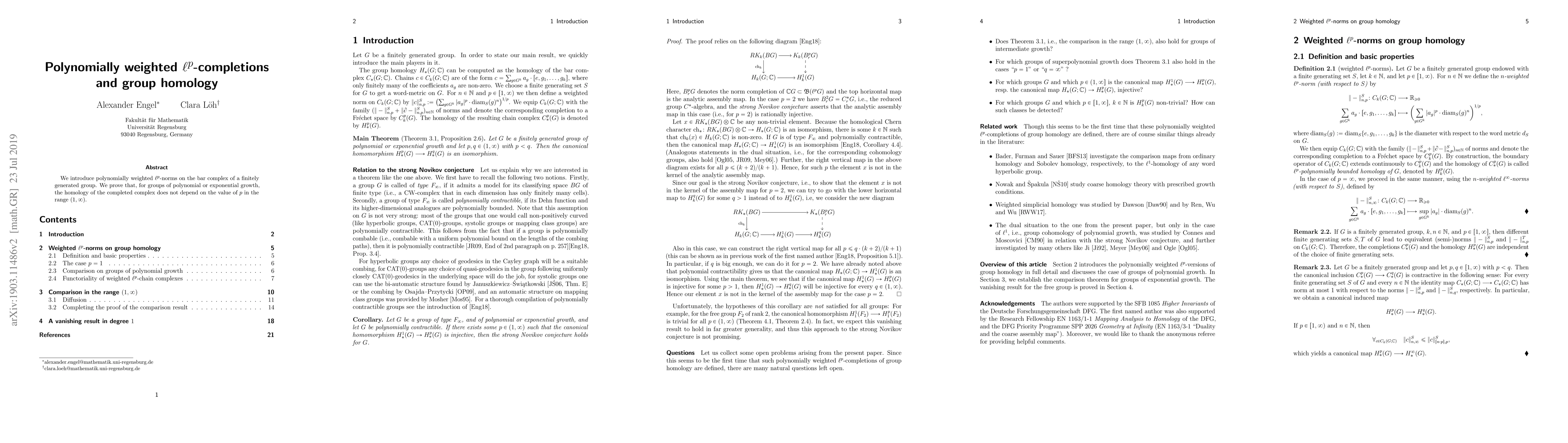 We introduce polynomially weighted $\ell^p$-norms on the bar complex of a finitely generated group. We prove that, for groups of polynomial or exponential growth, the homology of the completed complex does not depend on the value of $p$ in the range $(1,\infty)$.