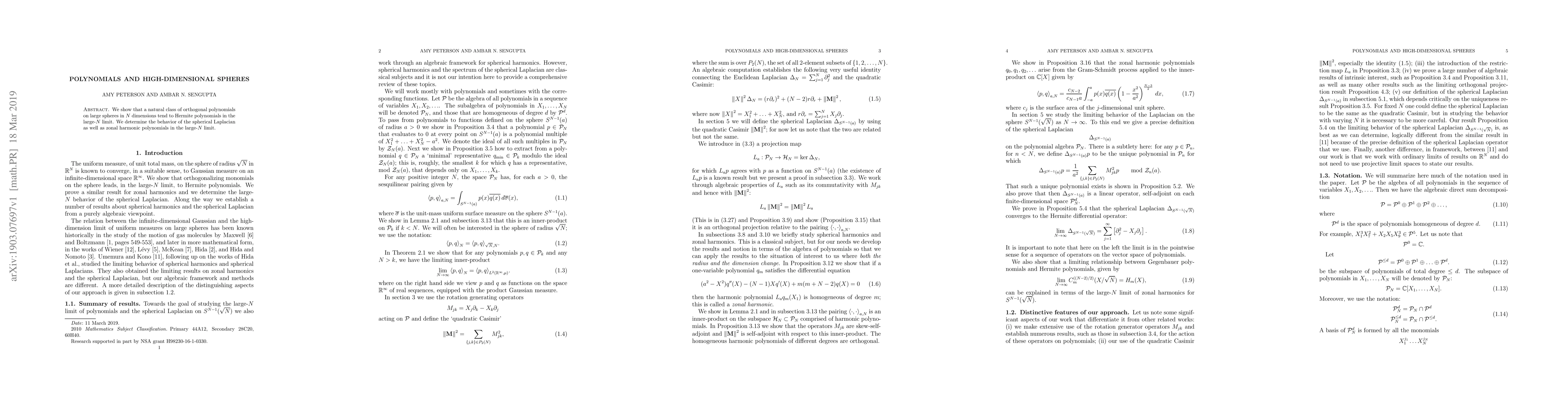 We show that a natural class of orthogonal polynomials on large spheres in $N$ dimensions tend to Hermite polynomials in the large-$N$ limit. We determine the behavior of the spherical Laplacian as well as zonal harmonic polynomials in the large-$N$ limit.