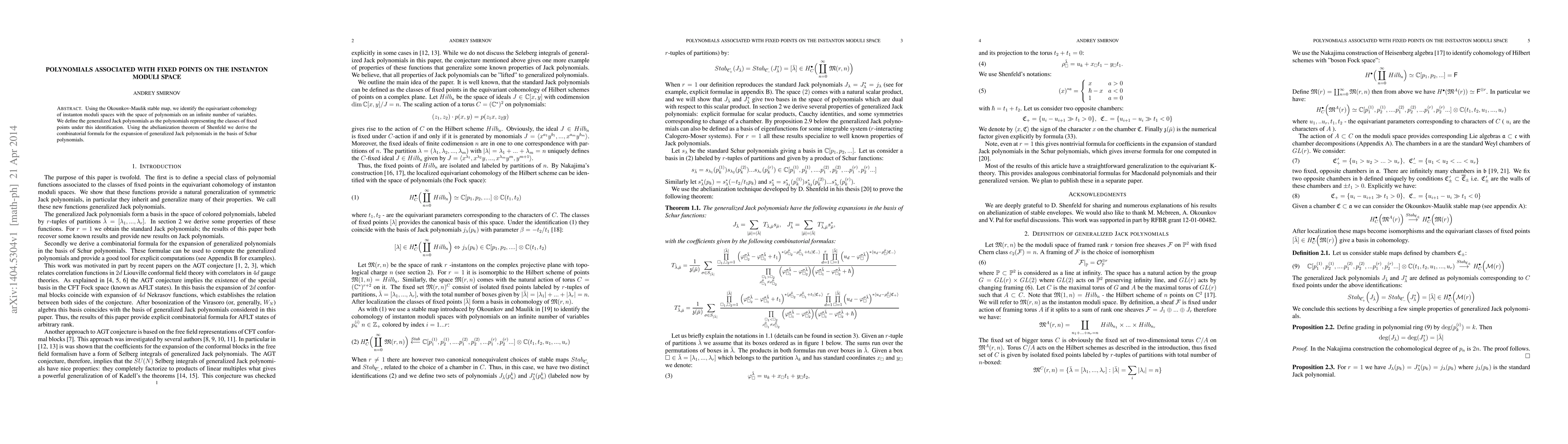 Researchers identify polynomials representing fixed points on instanton moduli spaces, linking them to generalized Jack polynomials with combinatorial formulas.