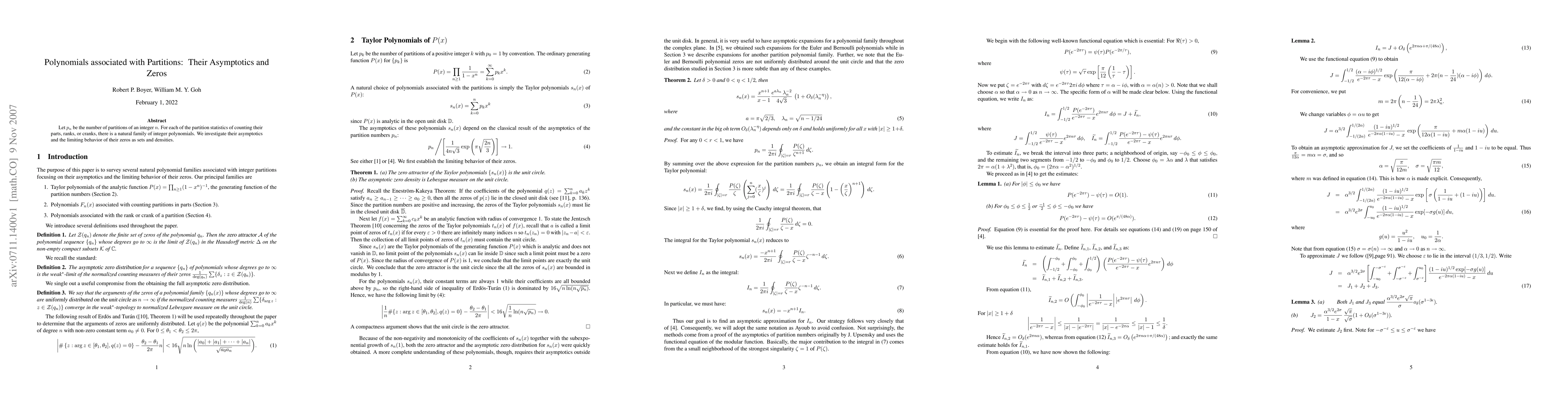 The research introduces a new approach to studying partition in part polynomials using asymptotic analysis and combinatorial techniques.