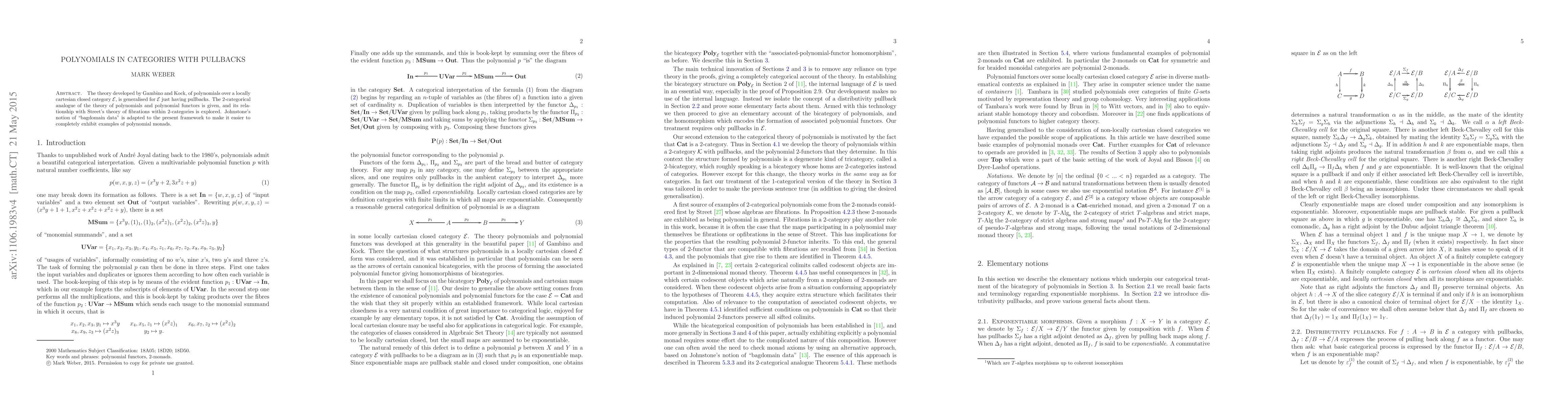 This paper generalizes the theory of polynomials in locally cartesian closed categories to categories with pullbacks, exploring the 2-categorical analogue and its connection to Street's fibration theory. It also adapts Johnstone's "bagdomain data" to facilitate the presentation of examples of polynomial monads.