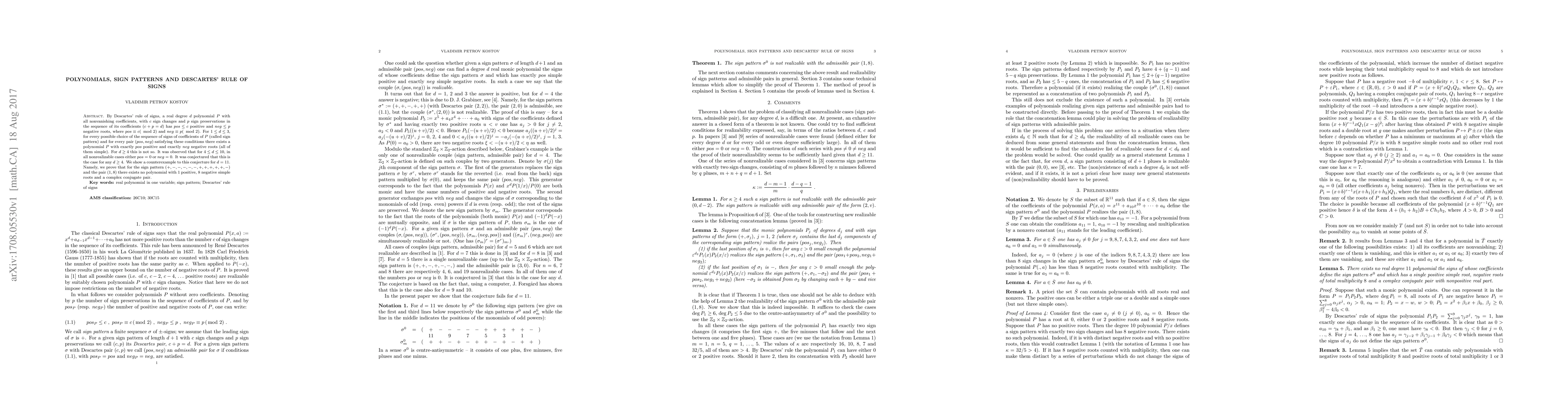 The paper examines the limitations of Descartes' rule of signs in determining the exact number of positive and negative roots for polynomials of degree $d \geq 4$. It refutes the conjecture that for $d \geq 4$, nonrealizable cases must have either zero positive or zero negative roots by presenting a counterexample for $d=11$ with the sign pattern $(+,-,-,-,-,-,+,+,+,+,+,-)$ and the root pair $(1,8)$.