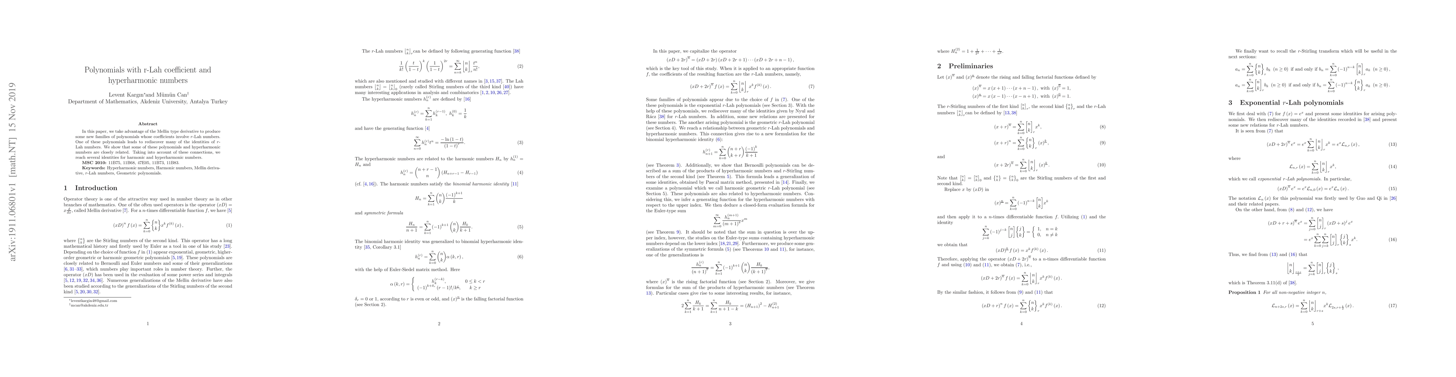 This paper introduces new polynomial families with coefficients involving r-Lah numbers using the Mellin type derivative, revealing connections to hyperharmonic numbers and deriving new identities for these numbers.