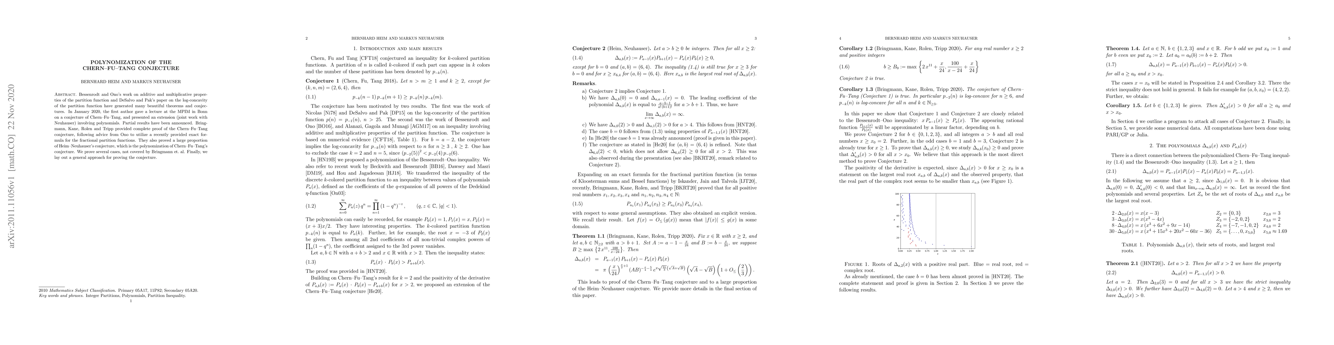 Bessenrodt and Ono's work on additive and multiplicative properties of the partition function and DeSalvo and Pak's paper on the log-concavity of the partition function have generated many beautiful theorems and conjectures. In January 2020, the first author gave a lecture at the MPIM in Bonn on a conjecture of Chern--Fu--Tang, and presented an extension (joint work with Neuhauser) involving polynomials. Partial results have been announced. Bringmann, Kane, Rolen and Tripp provided complete proof of the Chern--Fu--Tang conjecture, following advice from Ono to utilize a recently provided exact formula for the fractional partition functions. They also proved a large proportion of Heim--Neuhauser's conjecture, which is the polynomization of Chern--Fu--Tang's conjecture. We prove several cases, not covered by Bringmann et.\ al. Finally, we lay out a general approach for proving the conjecture.