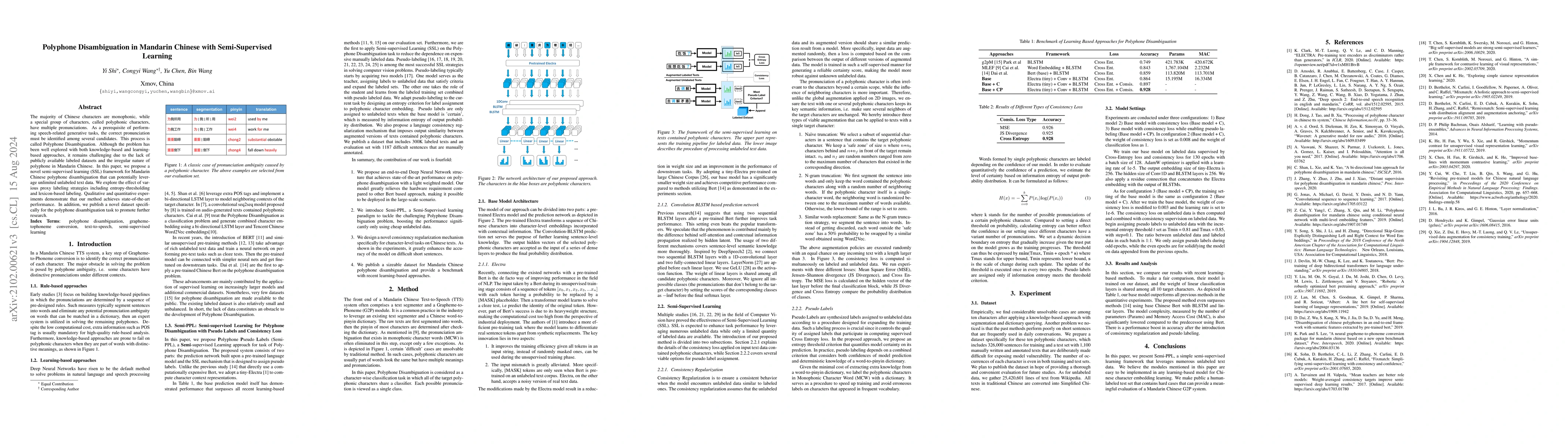 This paper proposes a semi-supervised learning framework for Mandarin Chinese polyphone disambiguation, leveraging unlabeled text data to improve pronunciation identification. The method achieves state-of-the-art results and includes a new dataset for further research.