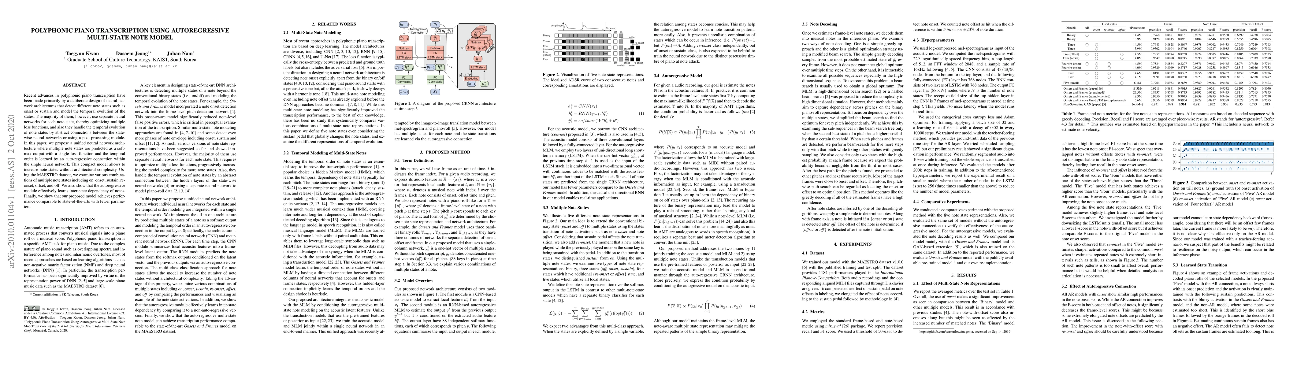 This paper proposes a unified neural network for polyphonic piano transcription that predicts multiple note states as a single softmax output, learning temporal order through an auto-regressive connection. The model achieves comparable performance to state-of-the-art methods with fewer parameters.