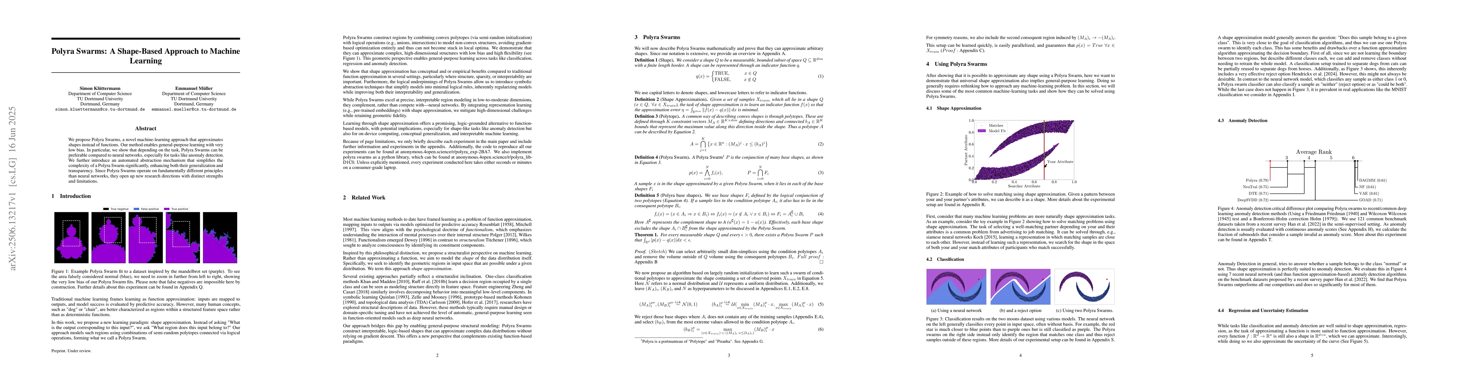 We propose Polyra Swarms, a novel machine-learning approach that approximates shapes instead of functions. Our method enables general-purpose learning with very low bias. In particular, we show that depending on the task, Polyra Swarms can be preferable compared to neural networks, especially for tasks like anomaly detection. We further introduce an automated abstraction mechanism that simplifies the complexity of a Polyra Swarm significantly, enhancing both their generalization and transparency. Since Polyra Swarms operate on fundamentally different principles than neural networks, they open up new research directions with distinct strengths and limitations.