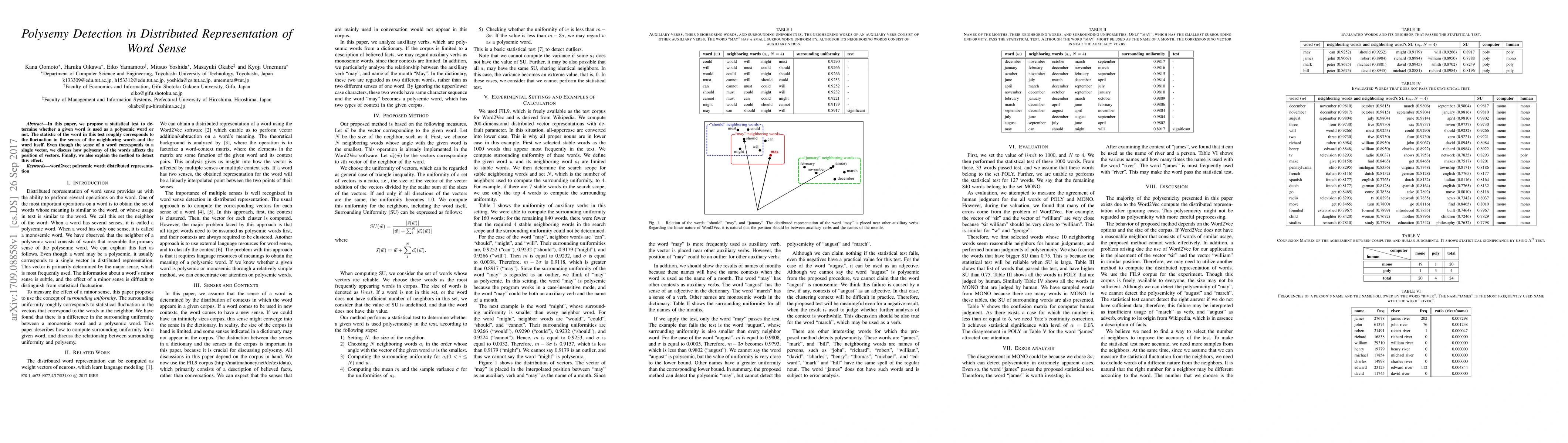This paper introduces a statistical test to identify polysemous words by analyzing fluctuations in word sense based on neighboring words' senses. It discusses how polysemy influences the positioning of word vectors in distributed representations and outlines a method to detect these effects.
