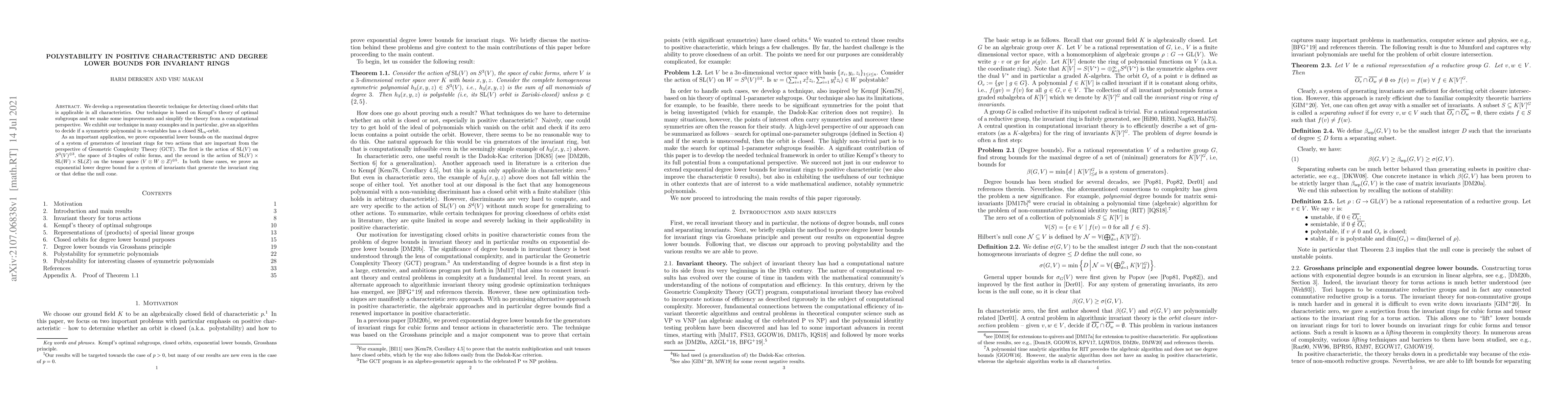 We develop a representation theoretic technique for detecting closed orbits that is applicable in all characteristics. Our technique is based on Kempf's theory of optimal subgroups and we make some improvements and simplify the theory from a computational perspective. We exhibit our technique in many examples and in particular, give an algorithm to decide if a symmetric polynomial in $n$-variables has a closed ${\rm SL}_n$ orbit. As an important application, we prove exponential lower bounds on the maximal degree of a system of generators of invariant rings for two actions that are important from the perspective of Geometric Complexity Theory (GCT). The first is the action of ${\rm SL}(V)$ on ${\rm Sym}^3(V)^{\oplus 3}$, the space of 3-tuples of cubic forms, and the second is the action of ${\rm SL}(V) \times {\rm SL}(W) \times {\rm SL}(Z)$ on the tensor space $(V \otimes W \otimes Z)^{\oplus 5}$. In both these cases, we prove an exponential lower degree bound for a system of invariants that generate the invariant ring or that define the null cone.