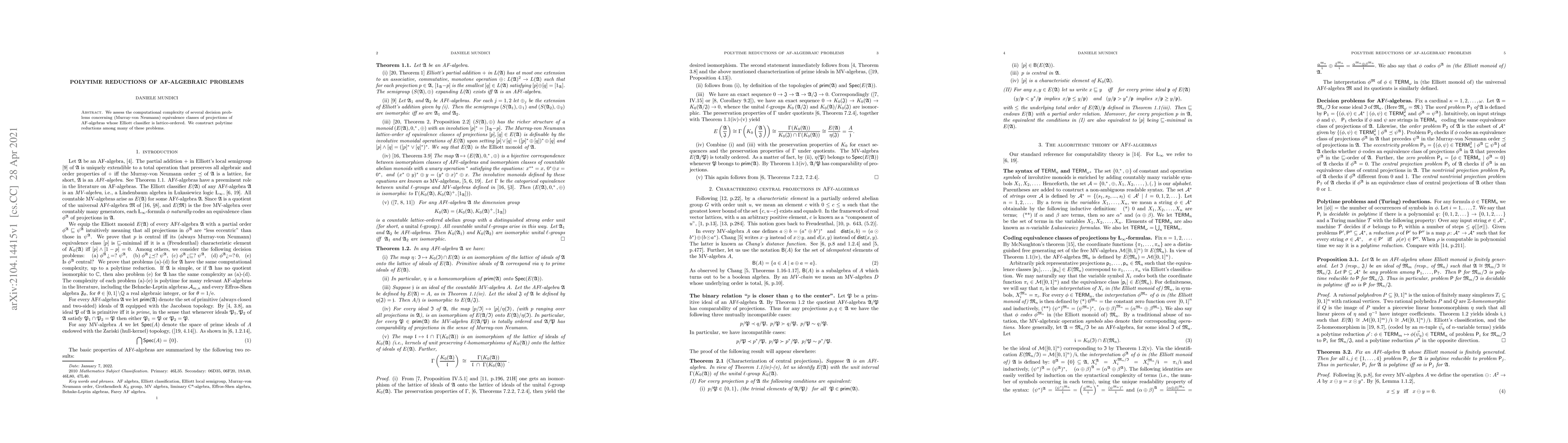 We assess the computational complexity of several decision problems concerning (Murray-von Neumann) equivalence classes of projections of AF-algebras whose Elliott classifier is lattice-ordered. We construct polytime reductions among many of these problems.