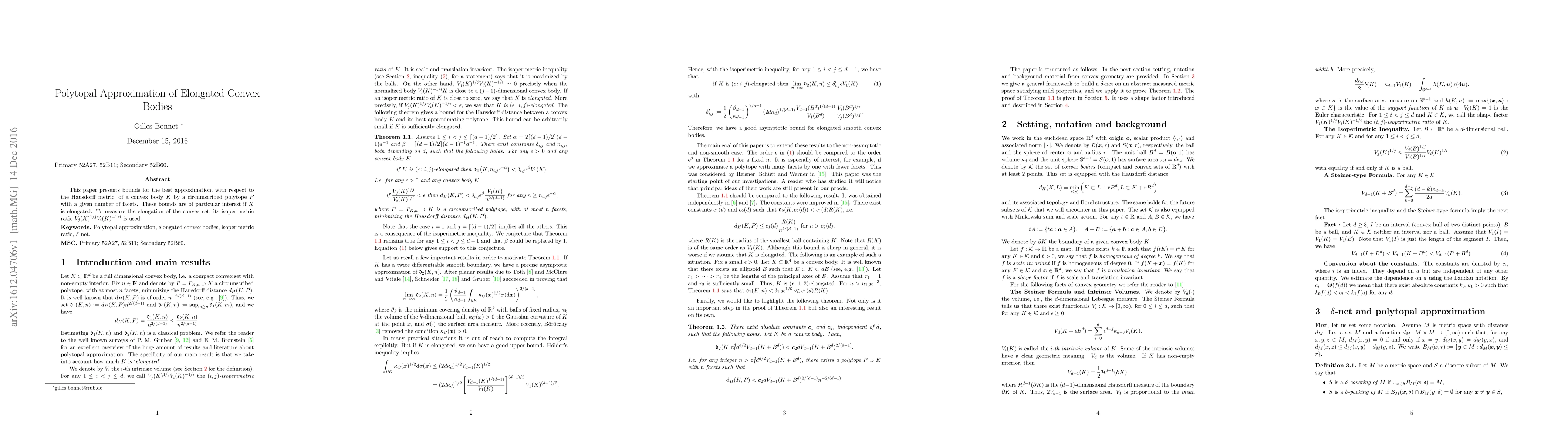 This paper establishes bounds for the best Hausdorff metric approximation of an elongated convex body $K$ by a circumscribed polytope $P$ with a specified number of facets, using the isoperimetric ratio to quantify elongation.