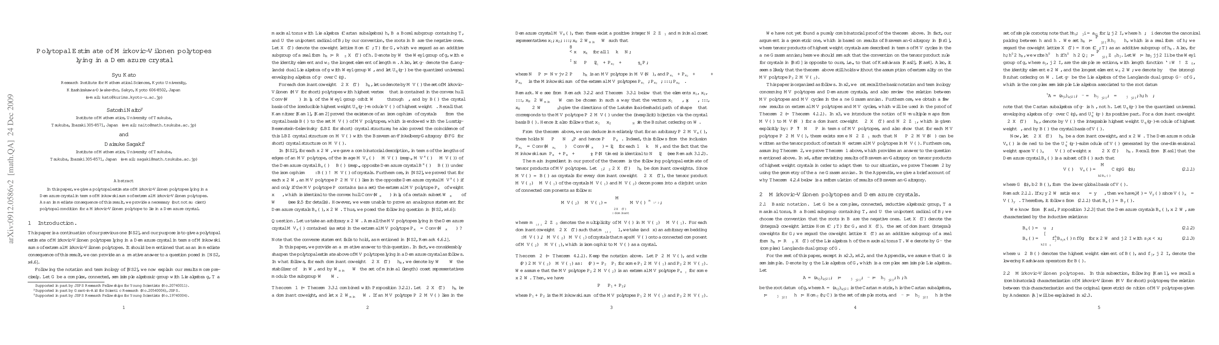 This paper provides a polytopal estimate of Mirkovic-Vilonen polytopes within a Demazure crystal, expressed as Minkowski sums of extremal Mirkovic-Vilonen polytopes, and offers a necessary polytopal condition for such polytopes.