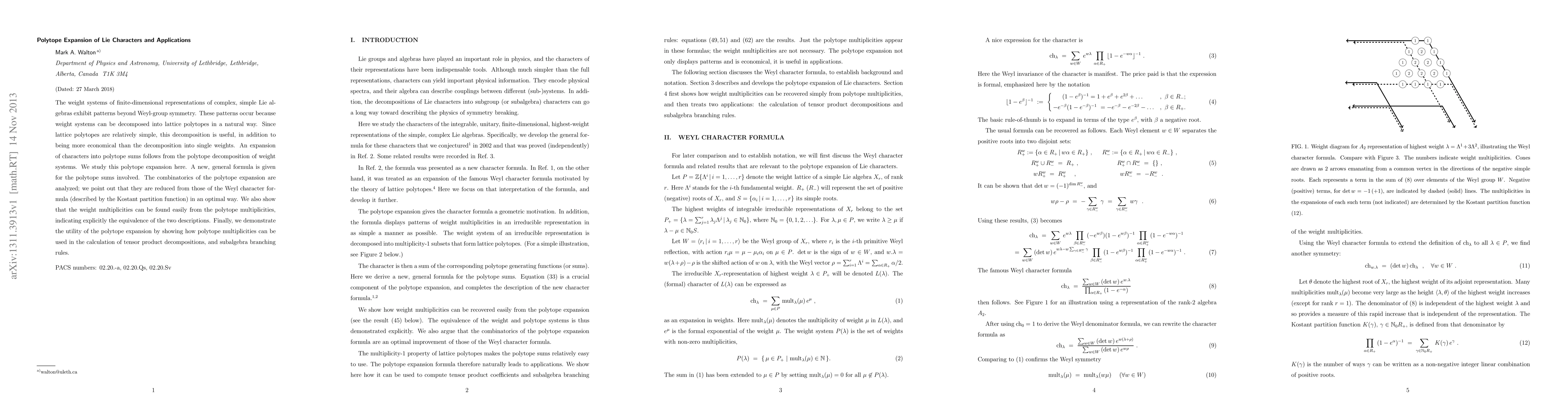 This paper explores the decomposition of weight systems of complex, simple Lie algebras into lattice polytopes, leading to a polytope expansion of Lie characters. The authors provide a new formula for polytope sums and demonstrate that this approach simplifies the combinatorics compared to the Weyl character formula, while also showing the equivalence between weight and polytope multiplicities.