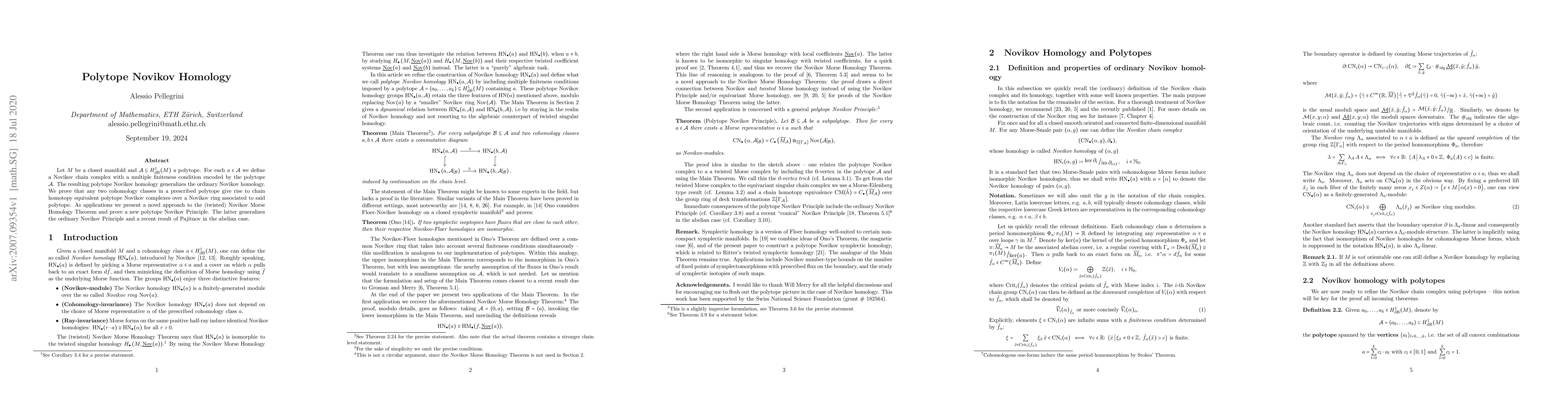 This paper introduces polytope Novikov homology, a generalization of ordinary Novikov homology, using a polytope $\mathcal{A}$ to encode a multiple finiteness condition. It proves that cohomology classes within a polytope yield chain homotopy equivalent polytope Novikov complexes, leading to new insights in twisted Novikov Morse Homology and a generalized polytope Novikov Principle.