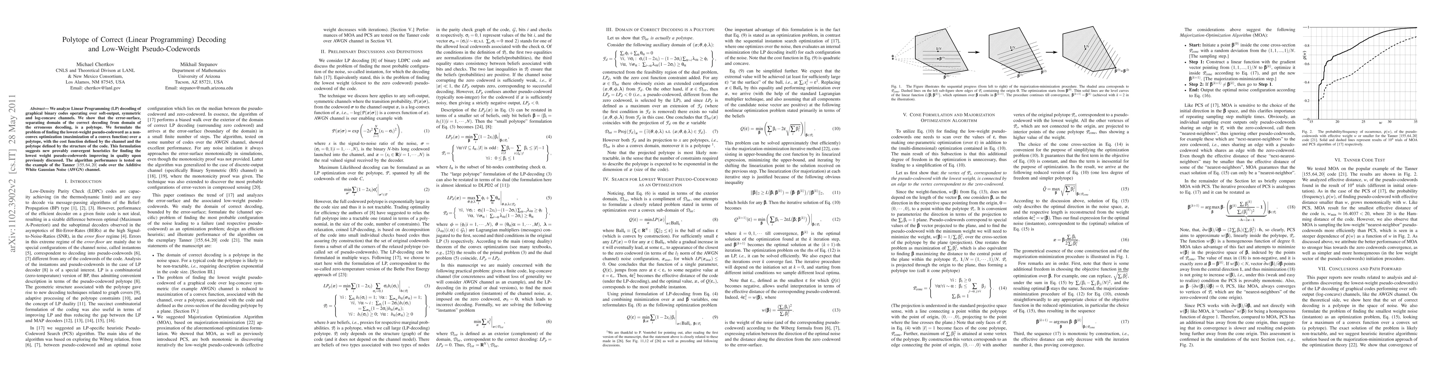 This paper analyzes the polytope structure of Linear Programming decoding for binary codes on symmetric channels, demonstrating that the error-surface is a polytope. It formulates the problem of finding the lowest-weight pseudo-codeword as a non-convex optimization over this polytope, proposing new heuristics that outperform previous methods, and tests the algorithm on a Tanner code over the AWGN channel.