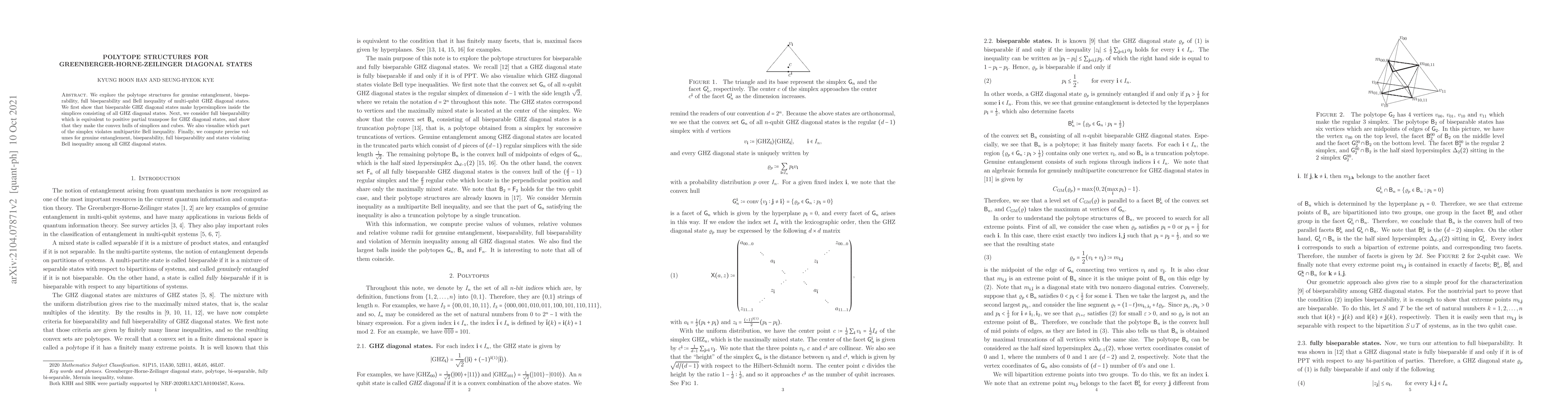 This paper explores the boundaries of entanglement in GHZ diagonal states, showing how different types of entanglement relate to geometric shapes and violating Bell's theorem.