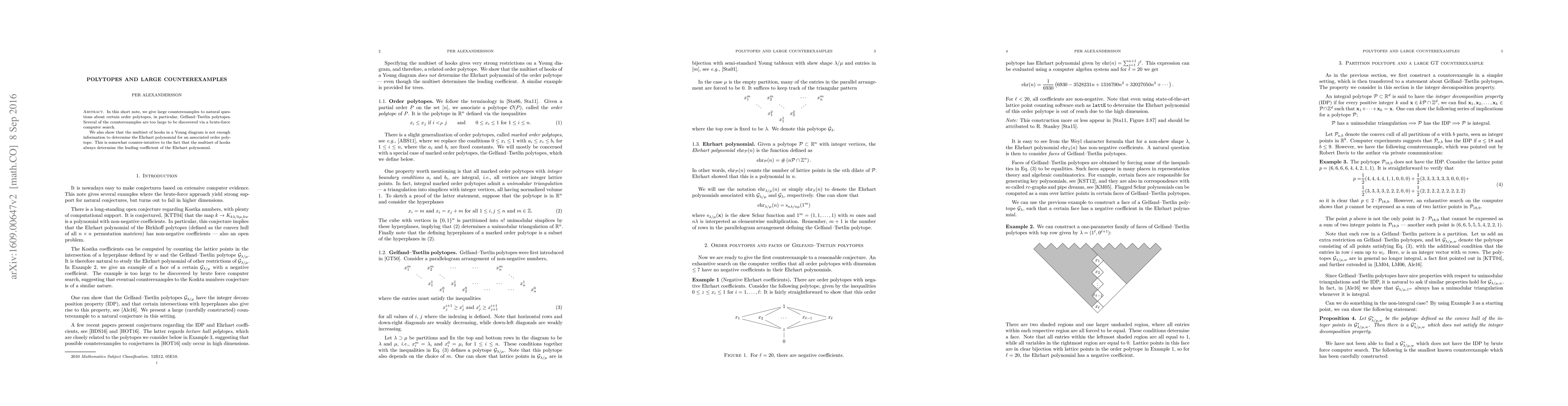 In this short note, we give large counterexamples to natural questions about certain order polytopes, in particular, Gelfand--Tsetlin polytopes. Several of the counterexamples are too large to be discovered via a brute-force computer search. We also show that the multiset of hooks in a Young diagram is not enough information to determine the Ehrhart polynomial for an associated order polytope. This is somewhat counter-intuitive to the fact that the multiset of hooks always determine the leading coefficient of the Ehrhart polynomial.